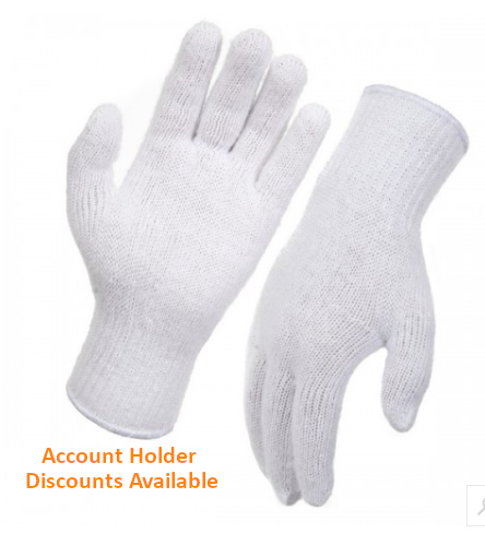 Knitted poly/cotton. Seamless. Used as glove or liner.