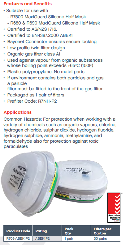 MaxiguardABEK1P2 ChemicalCartridge withP2 PrefilterCombination